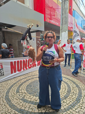 Durante o protesto, as lideranças sindicais também defenderam a redução da jornada de trabalho sem redução salarial e fim da jornada 6x1. O dia 15 de abril está sendo construído nacionalmente como um dia de luta pela redução da jornada de trabalho.
