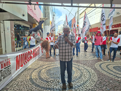 ‘Ditadura Nunca Mais e em Defesa da Soberania dos Povos da América Latina!’ essa foi a mensagem de sindicalistas, da Central Única dos Trabalhadores, UGT, Dialogay e militantes de esquerda que construíram na manhã desta quarta-feira, dia 1º de abril, no Centro de Aracaju, no Calçadão da João Pessoa, um protesto para lembrar a população do dia em que foi deflagrado o último golpe ditatorial no Brasil.