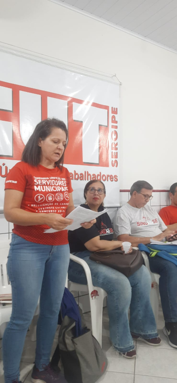 A presidenta da FETAM (Federação dos Trabalhadores do Serviço Público Municipal de Sergipe), Vanessa Ferreira, revelou durante a plenária que os servidores municipais de Sergipe recebem em média 1 salário mínimo e enfrentam uma luta constante para fazer valer seus direitos.