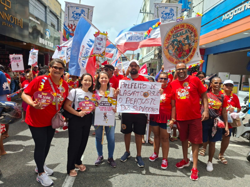 Bloco de Carnaval da CUT critica privatização da água, cobra fim da escala 6x1 e a aplicação da Lei do Descongela em benefício dos servidores públicos dos municípios, Estado e União