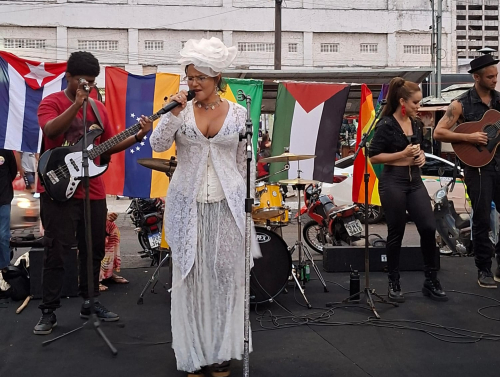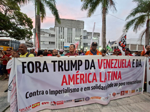 Para colocar as mãos em uma das maiores reservas de petróleo do mundo, a invasão dos Estados Unidos ao território da Venezuela e o sequestro do presidente Nicolás Maduro e da primeira dama Cilia Flores foram repudiados por várias lideranças sindicais, juventude, movimento estudantil, pelos vereadores Camilo Daniel (PT), Iran Barbosa (Psol), Sônia Meire (Psol), a deputada estadual Linda Brasil (Psol), o deputado federal João Daniel (PT) e o senador Rogério Carvalho (PT), presentes no protesto cultural.